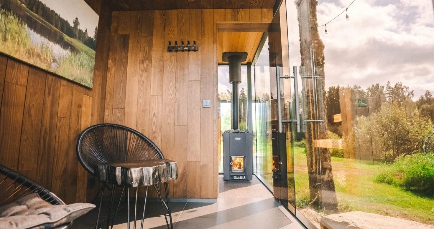 Badstuen er designet med vakre benker, drenering og en struktur som tåler høye temperaturer og høy luftfuktighet.
